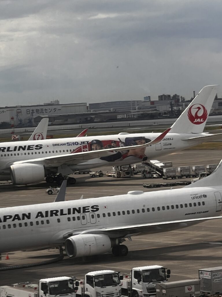 ラウンジから窓の外をよく見ると大谷選手のドリームジェットを発見👀ドジャースタジアムに観戦に行ったのは、ついこないだのことみたいなのに、時の流れは早いですね!