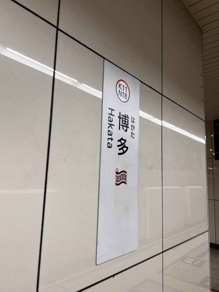 博多駅に到着しました。よく見ると、献上柄の博多織のマーク!博多織の帯素敵ですよね〜👘