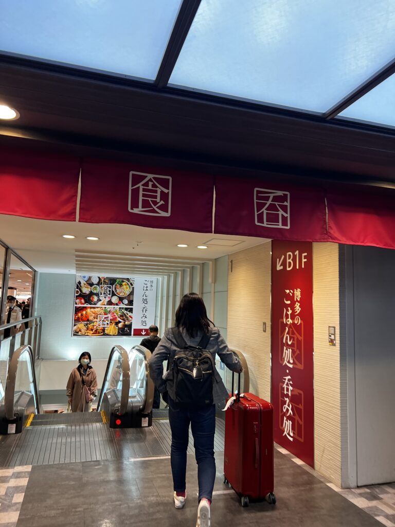 オーナーがラウンジのお姉さんにおすすめグルメを聞いたところ、博多駅に行けばなんでもあるとのこと!時間によって閉まってしまう場合もあるそうなので急いで向かいます。