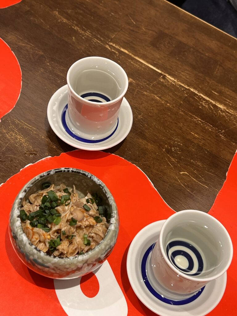美味しい!食中酒にぴったりな味わいの地酒は、美味しいものが沢山あるグルメな福岡ならではと納得です。おつまみに「酢もつ」も注文。