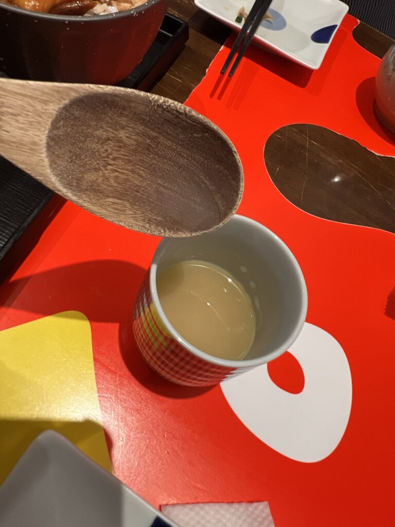 お湯呑みにスープを注ぐ
